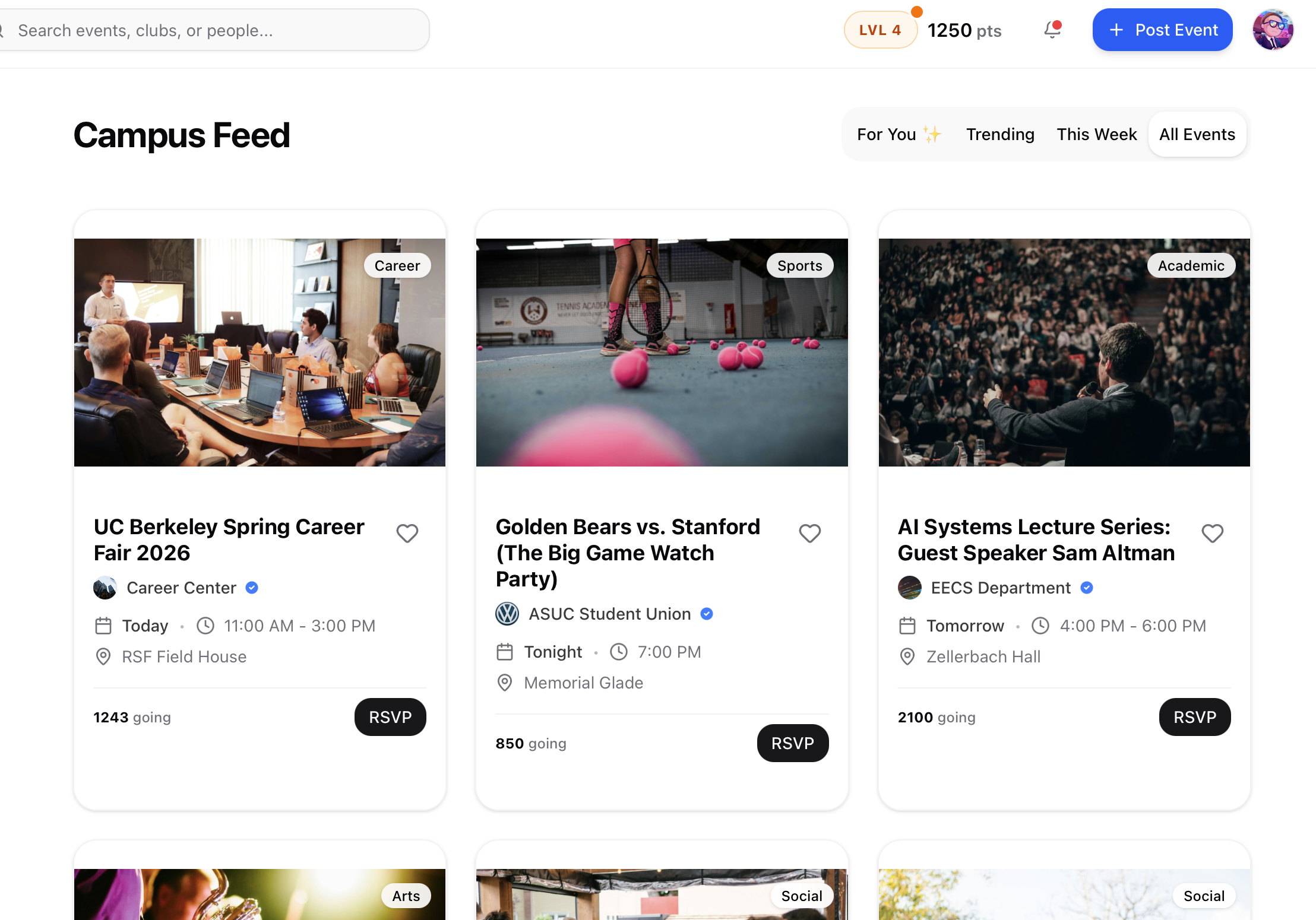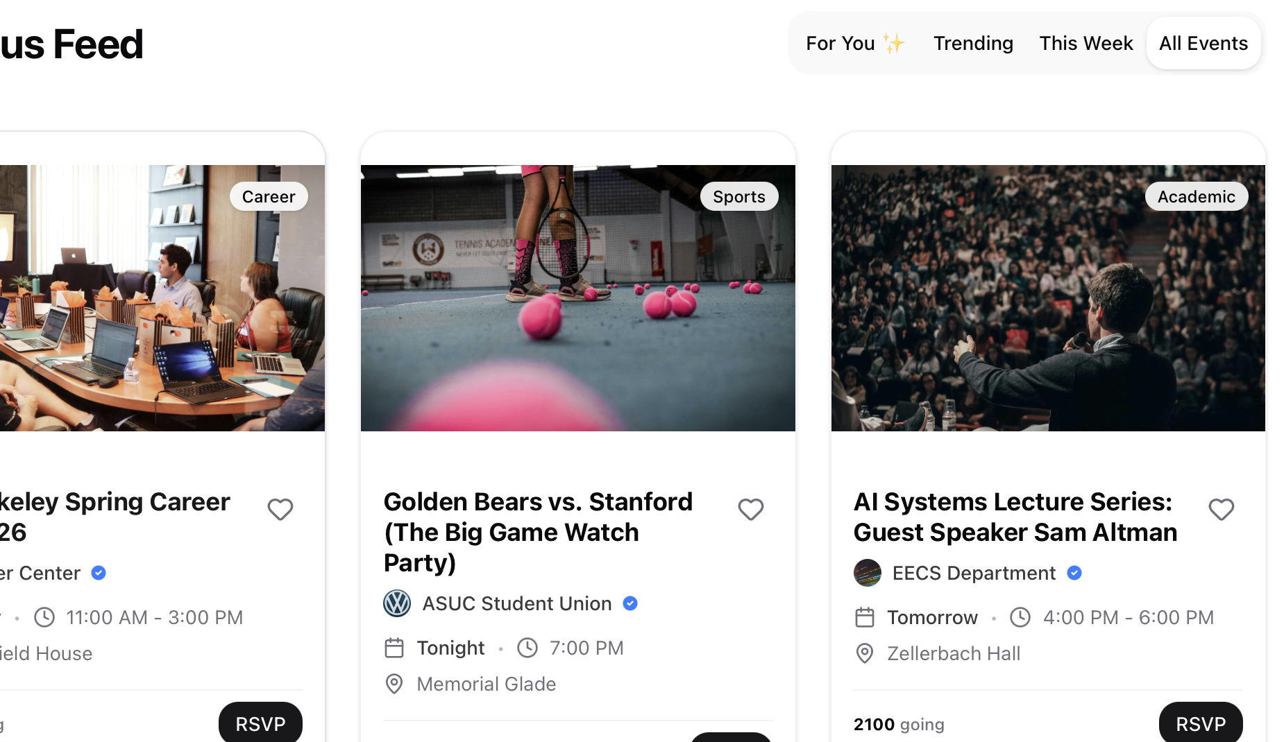 Every campus event in one feed. Stop checking 10 apps to figure out what's happening this weekend.